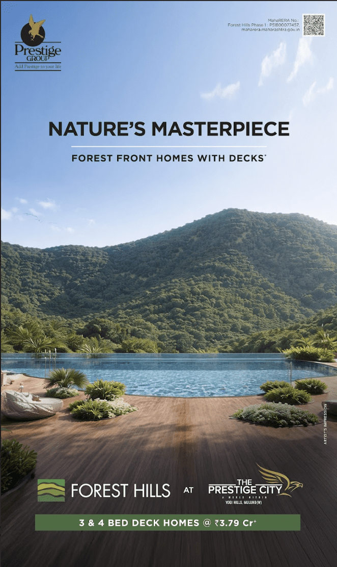 Spread over a lavish 30+ acres of verdant land on the foothills of Yogi Hills, Mulund is Prestige City- Central Mumbai’s largest integrated development featuring multiple clusters of high rise towers in its enclave. This hillside community enjoys the immense benefits of good air quality, lesser noise pollution and the expanse of planned open spaces.